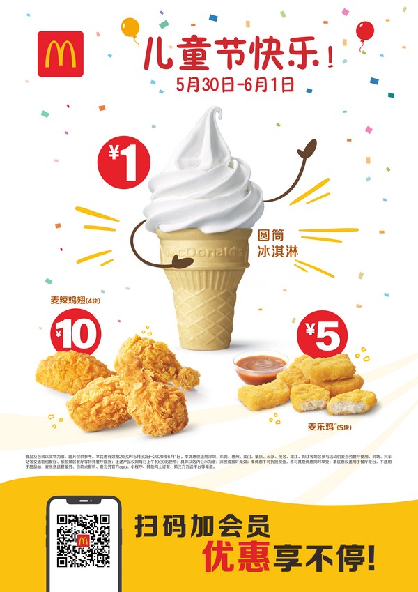 六一期間,來(lái)到麥當(dāng)勞餐廳的小朋友都將獲得免費(fèi)迷你甜筒等小驚喜。麥當(dāng)勞還推出六一節(jié)日套餐,以及全新開(kāi)心樂(lè)園餐玩具——“魔發(fā)精靈2”系列玩具,打造多樣兒童節(jié)體驗(yàn)。5月30日 -6月1日,麥當(dāng)勞深圳市場(chǎng)還特別推出六一促銷(xiāo)活動(dòng),顧客憑1元圓筒冰淇淋宣傳頁(yè)面截屏,可享受1元購(gòu)圓筒冰淇淋的活動(dòng)。讓大小朋友享受到美味與歡樂(lè)。(常軍平 )