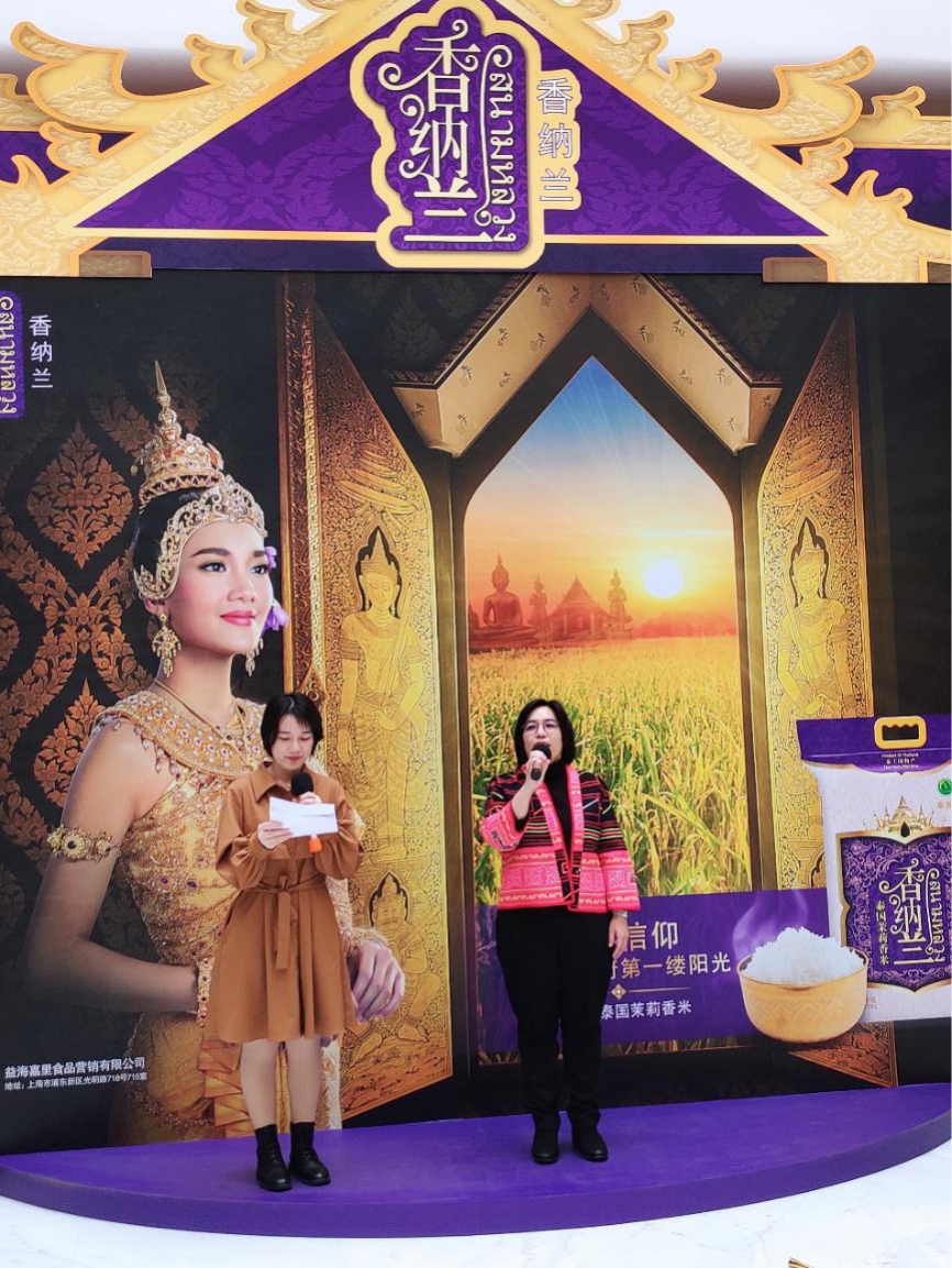 12月7日,香納蘭“泰”好吃樂(lè),陽(yáng)光之旅/益+秀新米品鑒展示活動(dòng)在上海金龍魚(yú)大廈隆重舉行,益海嘉里集團(tuán)特邀泰王國(guó)駐上??傤I(lǐng)事館農(nóng)業(yè)處領(lǐng)事吳佩賢女士參加活動(dòng)并致辭助力香納蘭,本次活動(dòng)形式豐富多彩,不僅有干貨十足的泰米知識(shí)介紹和專(zhuān)業(yè)泰廚現(xiàn)場(chǎng)教學(xué),還有美味的泰米試吃和有趣的互動(dòng)游戲。與此同時(shí),本次活動(dòng)將通過(guò)線上直播擴(kuò)大傳播范圍,讓更多消費(fèi)者了解香納蘭品牌的同時(shí)也能感受到獨(dú)特的泰國(guó)文化魅力。為了讓中國(guó)消費(fèi)者更進(jìn)一步了解泰國(guó)茉莉香米在泰國(guó)人民心目中的地位,泰國(guó)領(lǐng)事吳佩賢女士在直播間和粉絲做了短暫的分享。