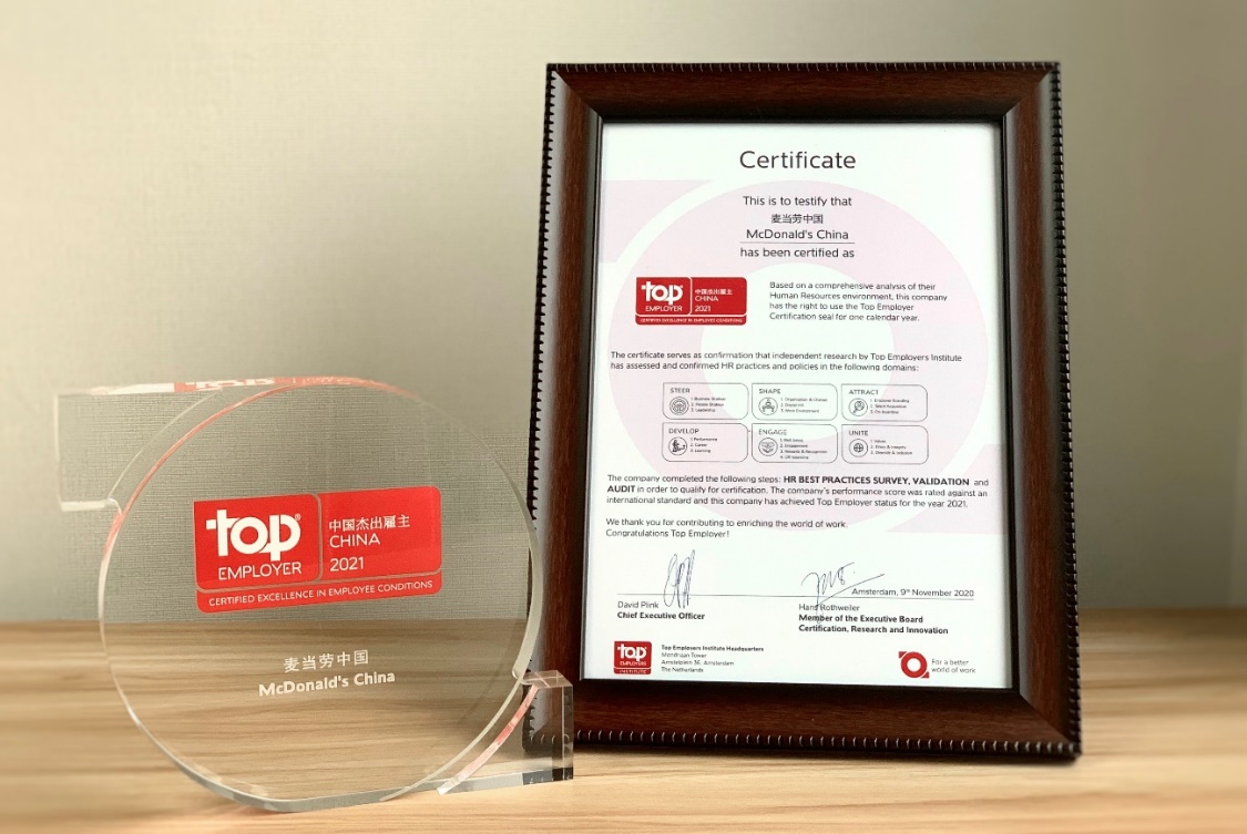 麥當勞中國榮獲“中國杰出雇主2021”認證