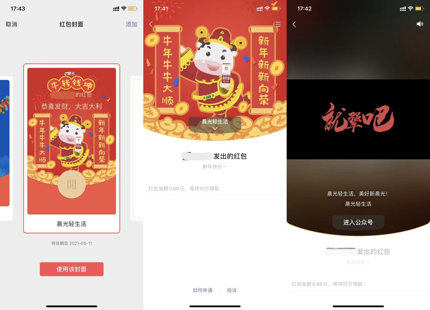 2021年的春節(jié)線上定制紅包封面成為網(wǎng)民熱議的話題,相較于往年的春節(jié)紅包,各具特色、風(fēng)格不一的紅包封面無(wú)疑是今年最明顯的特色了。晨光乳業(yè)也為此做出了嘗試,針對(duì)晨光牛奶用戶(hù)和粉絲大膽設(shè)計(jì),將憨態(tài)可掬的品牌IP放置在封面C位。無(wú)疑,這波寵粉操作有助晨光牛奶獲得更多粉絲的點(diǎn)贊,增強(qiáng)用戶(hù)粘度。