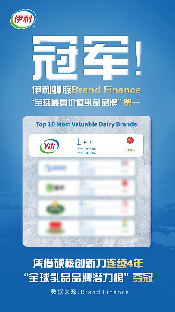 伊利為消費者的傾力付出得到了越來越多消費者的認(rèn)可,在全球的品牌價值也日益凸顯。在國際權(quán)威品牌價值評估機構(gòu)Brand Finance發(fā)布的榜單中,公司更是蟬聯(lián)“全球最具價值乳品品牌10強”第一名,并連續(xù)4年在“全球乳品品牌潛力榜”中奪冠。