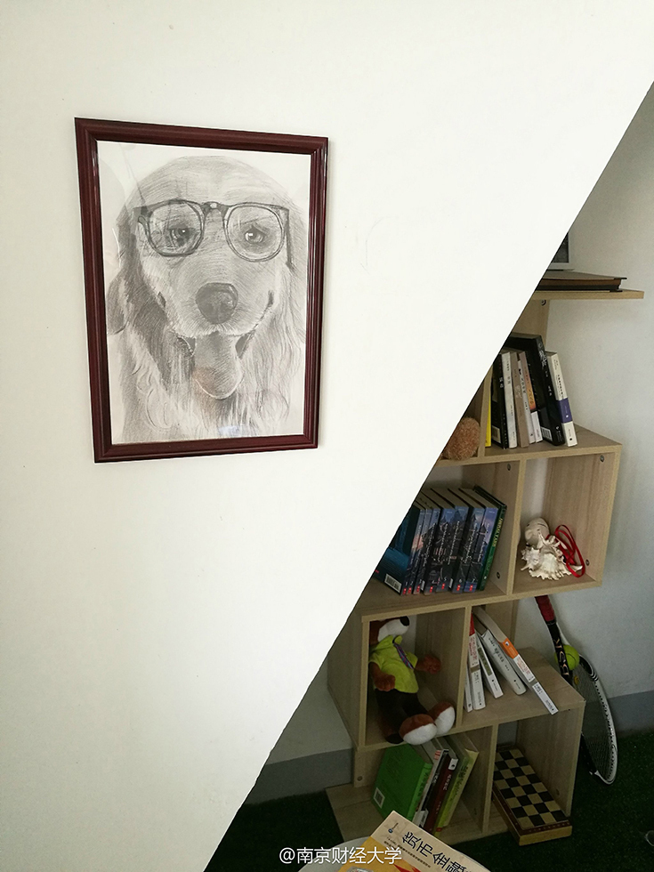 墻上一幅戴著眼鏡的小狗素描圖格外引人注目,它是由602舍長(zhǎng)涂貴平親手畫的。“這幅畫還是去年自己參加了一個(gè)帶有公益性質(zhì)的畫畫班學(xué)的,我也沒想到能畫成這樣?!眮碜再F州的涂貴平害羞地說,其實(shí)裝飾寢室的初衷很簡(jiǎn)單,錢就花了300塊不到,主要是希望大學(xué)四年能住在干凈的環(huán)境。