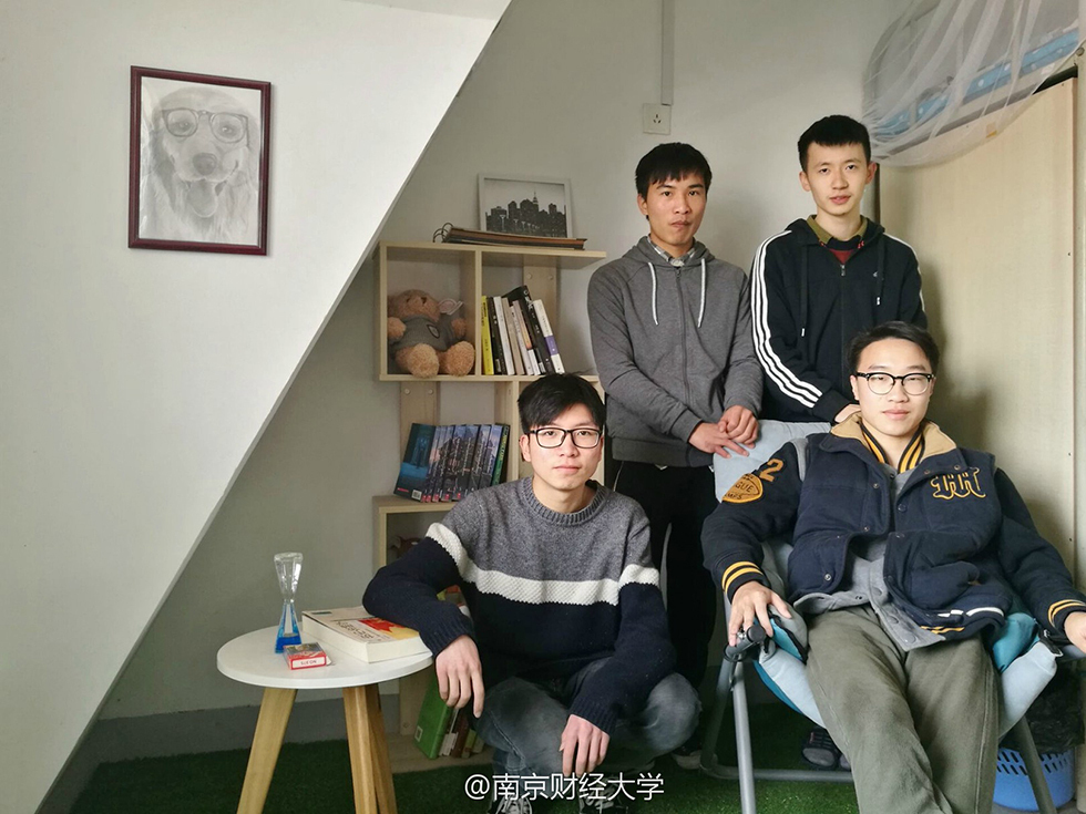 “這四個孩子風格迥異,學習成績也都很好,比如劉以康,績點4.0,是個超級學霸;廉鎮(zhèn)宇平時愛攝影,很活躍……”南京財經大學外國語學院黨委副書記李慕原笑著介紹,早有耳聞他們宿舍很文藝,今天見到果然名不虛傳,“男生宿舍搞得這么美,我自己都覺得很有意思,不少女孩子看了圖片也驚嘆說要來好好借鑒?!?/p>
