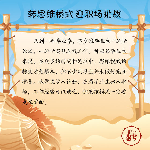 又到一年畢業(yè)季,不少準畢業(yè)生一邊忙論文,一邊忙實習(xí)或找工作。對應(yīng)屆畢業(yè)生來說,在眾多的轉(zhuǎn)變和適應(yīng)中,思維模式的轉(zhuǎn)變才是根本,但不少實習(xí)生并未做好充分準備。從學(xué)校步入社會,應(yīng)屆畢業(yè)生初入職場,工作經(jīng)驗可以缺乏,但思維模式一定要走在前面