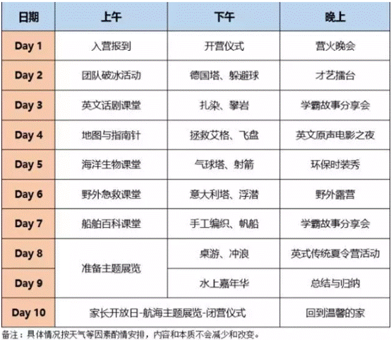 第八天、第九天·準(zhǔn)備航海作品展—沖浪挑戰(zhàn)—水上嘉年華—英式傳統(tǒng)夏令營(yíng)