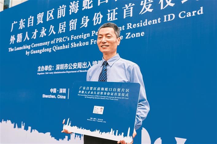 9月4日,深圳市公安局舉行廣東自貿(mào)區(qū)前海蛇口自貿(mào)片區(qū)外籍人才永久居留身份證首發(fā)儀式,澳大利亞籍華人張威獲發(fā)首張證件,為廣東省首位積分評(píng)定的技術(shù)人才申請(qǐng)獲得廣東自貿(mào)區(qū)外籍人才永久居留身份證。