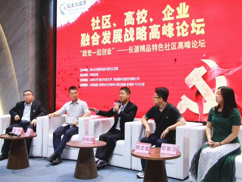 桃源街道黨工委書記黃健表示,本次論壇是智園黨群服務中心正式開放以來的第一場大型活動,桃源街道黨工委將努力把這里打造成為“一中心兩平臺”,即社區(qū)、校區(qū)、園區(qū)“三區(qū)融合”展示中心,北部片區(qū)園區(qū)黨群服務平臺,資源共建、共享、共治的對接平臺,把智園和長源片區(qū)打造成為“三區(qū)融合”的典范。嘉賓易松國作為主講嘉賓,進行了《共建、共治、共享視角下的社區(qū)融合》主題演講。隨后嘉賓們圍繞黨建統(tǒng)領(lǐng)的社區(qū)融合建設(shè)中,企業(yè)、高校、社區(qū)如何發(fā)揮各自優(yōu)勢,提供資源與平臺,打造長源精品特色社區(qū)各抒己見。嘉賓林彥結(jié)合本公司的孵化發(fā)展歷程暢談智園的發(fā)展,他表示目前公司已經(jīng)與全國多家高校建立了合作關(guān)系,共同推動創(chuàng)新技術(shù)的產(chǎn)業(yè)化。嘉賓藍海指出:南方科技大學的迅速崛起,從科研成果產(chǎn)業(yè)化、人才輸送等方面為長源社區(qū)的發(fā)展提供了廣闊的空間。