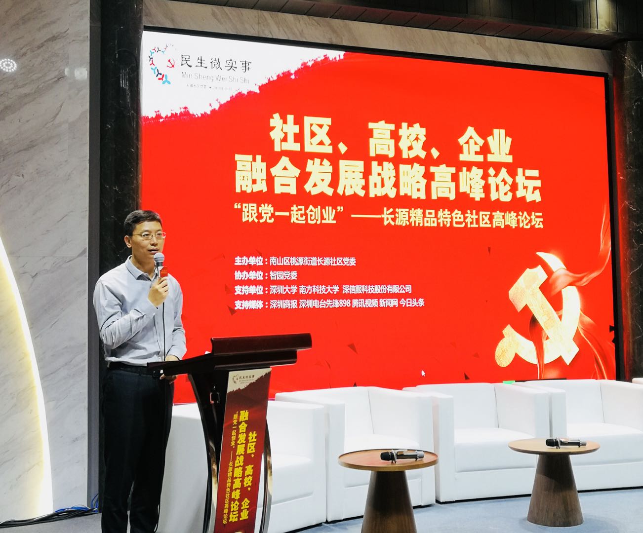 深圳新聞網(wǎng)訊10月30日,社區(qū)、高校、企業(yè)融合發(fā)展戰(zhàn)略高峰論壇在深圳市南山區(qū)智園 B1棟黨群服務中心大樓舉行,論壇由南山區(qū)桃源街道長源社區(qū)黨委主辦。本次論壇以“社區(qū)、高校、企業(yè)融合發(fā)展戰(zhàn)略”為主題,匯聚了來自社區(qū)、高校、企業(yè)的相關(guān)知名人士,共同探討融合發(fā)展策略,打造長源精品特色社區(qū)。桃源街道黨工委書記黃健,知名社會學家、深圳大學教授易松國,深信服科技股份有限公司黨委書記林彥,南方科技大學致誠書院副院長藍海等出席了論壇。