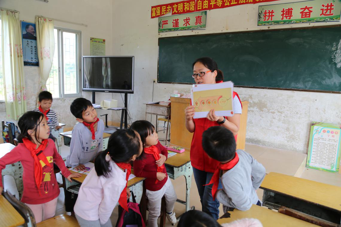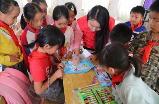 龍門縣是中國現(xiàn)代民間繪畫畫鄉(xiāng),以“龍門農(nóng)民畫”著稱。就讀于龍門縣橫槎小學的學生,因?qū)W?;A(chǔ)設(shè)施落后,教學物資匱乏,無法開展相關(guān)的農(nóng)民畫藝術(shù)課程。為了幫助孩子們通過繪畫感受自然生態(tài)與鄉(xiāng)村生活之美,傳承民間繪畫藝術(shù),洋洋公益團隊中來自“德藝軒”美術(shù)培訓機構(gòu)的彭小利老師開展“創(chuàng)意繪畫·神秘的海洋世界”美術(shù)小課堂,結(jié)合海洋中形態(tài)各異的生物,聲情并茂地講授素描、水彩等繪畫知識,讓孩子們感受繪畫藝術(shù)的樂趣。