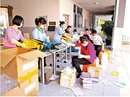 “學校線上教學,沒有教材,學生們做筆記不太方便,教學效率也不盡如人意。”愛華小學為了能夠準確及時地把教材送到學生家中,盡量減少師生與外界過多接觸,在行動前就做足了功課,一一梳理學生詳細住址、聯(lián)系電話及最佳的快遞書路線。校長丘苑銀說:“由于有部分學生還未返深圳,比較分散,跨省市都有,但無論多遠,我們都要把書送到學生手中?!倍潭桃惶鞎r間,學校共郵寄出150多套教材;對在深圳的學生,學校已安排人員發(fā)放完畢。