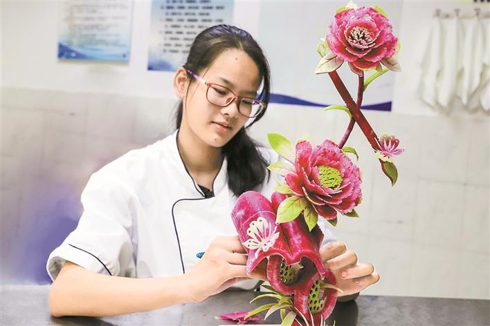 在寶職集團二校區(qū)的培養(yǎng)下,羅鳳鳴獲得了廣東省技能大賽烹飪團體項目二等獎,并獲得首批中職國家獎學金。