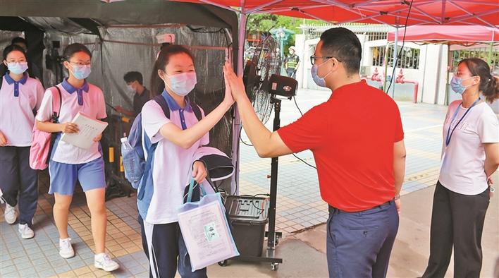 見圳客戶端·深圳新聞網(wǎng)2020年7月21日訊 昨日,深圳市2020年中考順利開考。全市8萬多名考生分赴10個考區(qū)、151個考點參加考試,各項考務(wù)工作有條不紊。記者在深圳市招考辦獲悉,中考首日,各考點在嚴格組織好考務(wù)工作的同時,為考生提供多種貼心服務(wù),獲考生、家長贊譽。