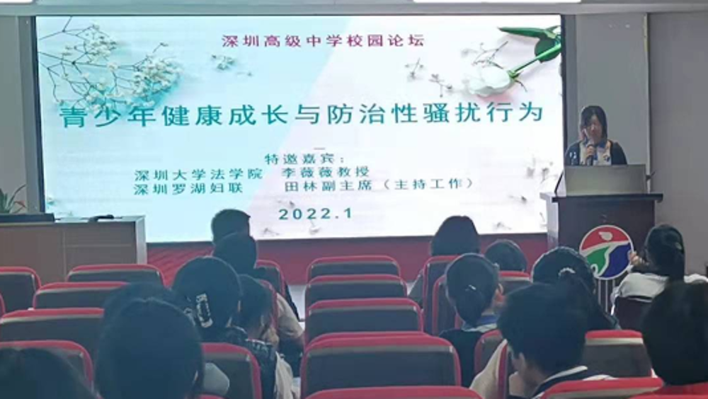 1月8日,深圳市高級(jí)中學(xué)舉辦“青少年健康成長與防治性騷擾行為”主題論壇,邀請(qǐng)深圳市羅湖區(qū)婦聯(lián)副主席田林、深圳大學(xué)法學(xué)院李薇薇教授、深圳市高級(jí)中學(xué)學(xué)生代表吳雅涵同學(xué)擔(dān)任主講。