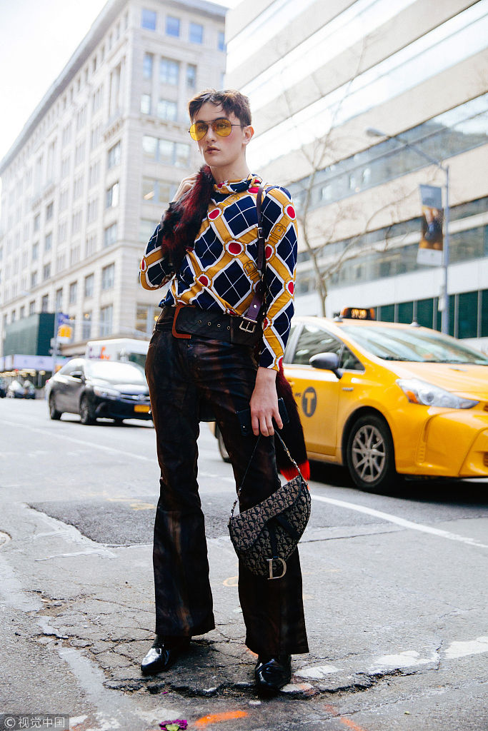????小編發(fā)現(xiàn)自打今年年初開始,歐美潮流圈的各路時髦精們一時間都開始團寵Prada的尼龍包,土酷古板的外形和中性的面料,怎么看都跟時髦不沾邊,但是就是這么莫名其妙的迎來了自己的“第二春”!經典的Prada尼龍包的設計,其實非常簡單實用,明顯的Prada三角Logo,搭配看起來超級商務的全黑和正經的拉鏈設計,可以說是非常的中規(guī)中矩了,但是就是這樣規(guī)規(guī)矩矩的設計,卻意外和現(xiàn)在正火的街頭風和復古風特別搭調,火遍大街小巷~ (圖片來源:視覺中國)