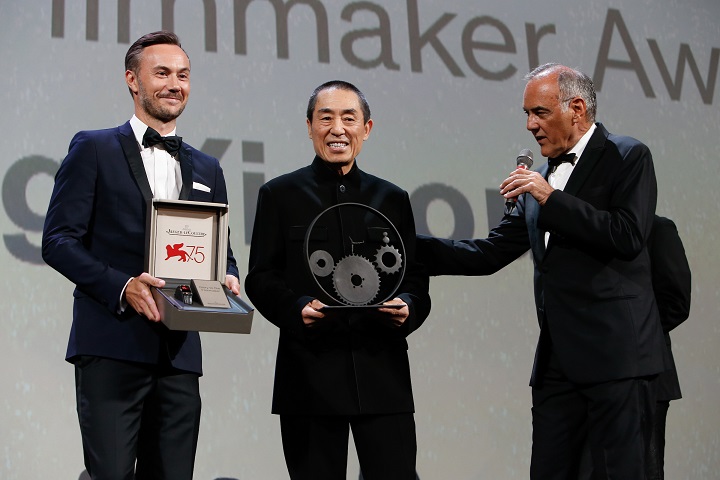 ????深圳新聞網(wǎng)訊 2018年9月6日晚,2018積家電影人榮譽(yù)獎(jiǎng)(Jaeger-LeCoultre Glory to the Filmmaker)的頒獎(jiǎng)儀式于威尼斯電影宮(Palazzo del Cinema)隆重舉行,積家全球市場(chǎng)傳訊總監(jiān)Nicolas Siriez與威尼斯國(guó)際電影節(jié)主席阿爾伯托?巴巴拉(Alberto Barbera)一同為中國(guó)著名導(dǎo)演張藝謀頒獎(jiǎng),感謝他對(duì)當(dāng)代電影原創(chuàng)性發(fā)展做出的杰出貢獻(xiàn)。頒獎(jiǎng)典禮之后,作為此次非競(jìng)賽單元影片的導(dǎo)演張藝謀最新力作《影》 于威尼斯電影節(jié)進(jìn)行全球首映。