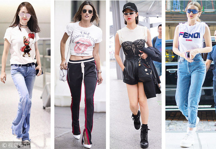 ????夏日炎炎怎么穿才最簡約清爽?答案一定是T恤無疑了!只是一本正經(jīng)的尋常穿法又怎么會是時髦精的所愛,宋茜、吉吉帶頭玩起挽袖新花樣,大面積露玉臂,清涼又養(yǎng)眼?。▓D片來源:視覺中國)