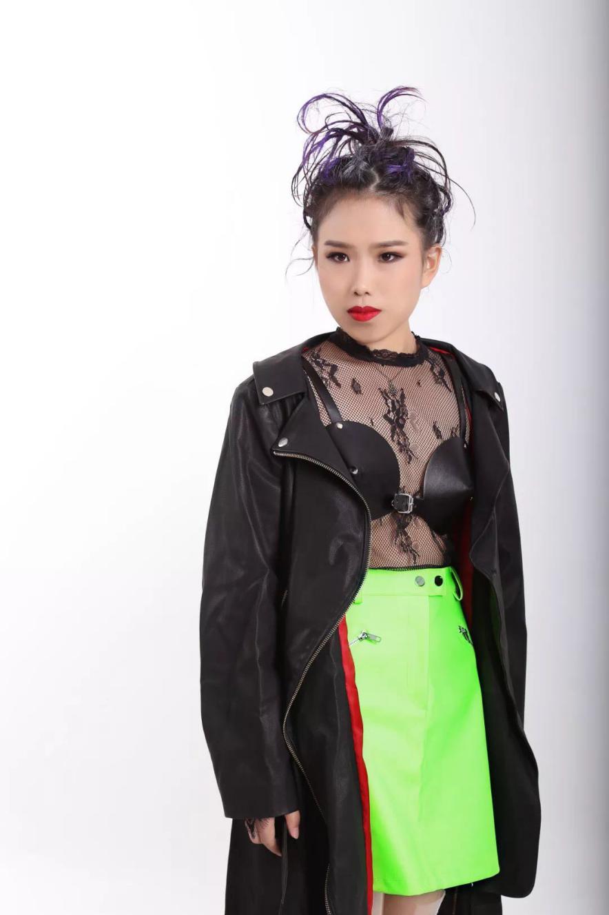 Nana長(zhǎng)得特別冷艷的,內(nèi)心像藏了一頭野獸,如果穿日韓風(fēng)的話會(huì)埋沒(méi)了她的氣場(chǎng)。這次給她選擇了現(xiàn)在國(guó)際最流行的PVC靴子,搭配了熒光色的短裙,她完全可以撐起來(lái)。