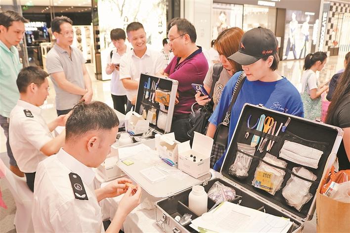 “我想檢測一下我的化妝品是否安全”,市民蔣女士帶著自己日常用的面膜在壹方城化妝品快檢點(diǎn)排起了隊(duì),“往臉上涂的一定要格外注意,有沒有非法添加違禁物質(zhì)要檢測后才知道,看到今天有免費(fèi)檢測,我就立馬過來了”。原來,為強(qiáng)化轄區(qū)化妝品的監(jiān)管力度,深化消費(fèi)者對化妝品安全的認(rèn)識,深圳市市場和質(zhì)量監(jiān)督管理委員會寶安局醫(yī)療器械科9月13日在壹方城內(nèi)舉行了以“守護(hù)美麗,安全同行”為主題的化妝品安全宣傳活動,現(xiàn)場的“你送我檢”活動備受愛美人士歡迎。市市場和質(zhì)量監(jiān)管委?;幐碧庨L方友川、市市場和質(zhì)量監(jiān)管委寶安局副局長陳子晟參與當(dāng)天活動。