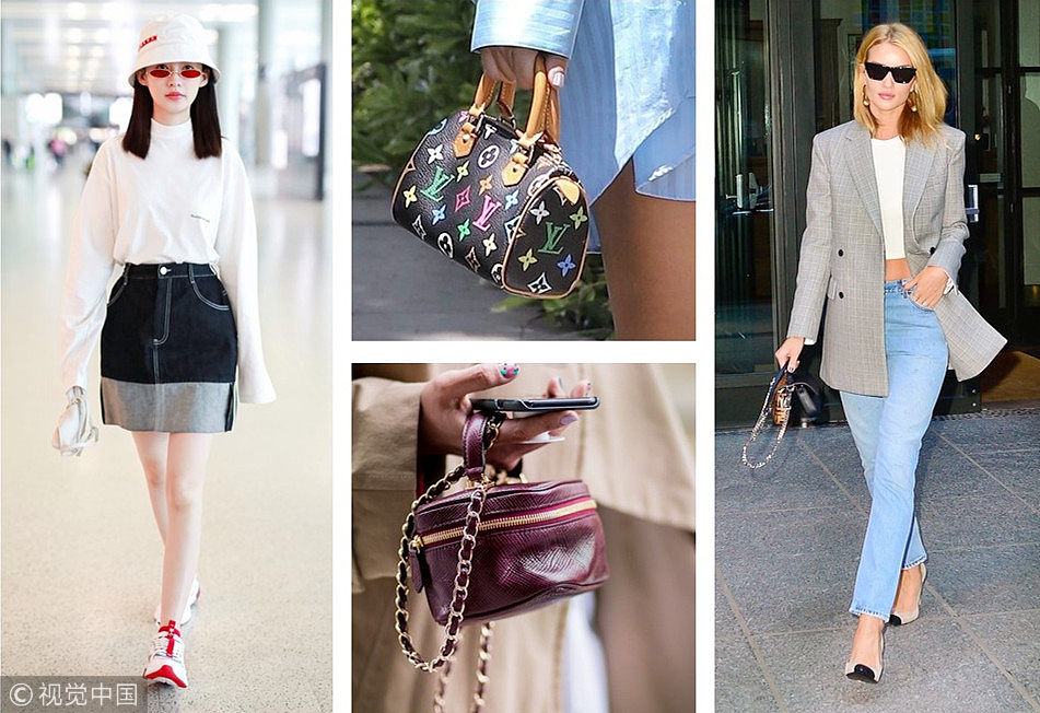 小到連手機(jī)都裝不下的迷你包潮人、超模們卻在瘋狂追捧,或許你覺(jué)得它很雞肋,但不得不承認(rèn)迷你手提包在時(shí)尚圈的地位。一只小小的手提包拎出門(mén),簡(jiǎn)直就是整套Look的點(diǎn)睛之筆。 (圖片來(lái)源:視覺(jué)中國(guó))