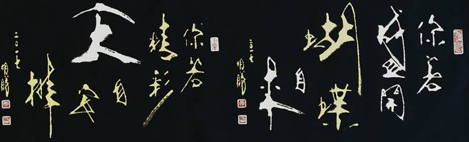 黃明勝從事書法與篆刻鉆研已逾30年,他認(rèn)為:美感的建立才是學(xué)習(xí)藝術(shù)的第一步,而非技法;奠定了美感的基礎(chǔ)再從中建立自己的價值,隨波不逐流。秉持『自出新意,不踐古人』的理念,書寫從未臨帖,歷經(jīng)數(shù)十載,而今創(chuàng)作出融合中國傳統(tǒng)藝術(shù)與現(xiàn)代風(fēng)格的書法創(chuàng)新體裁—『書畫體』。