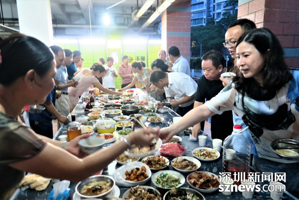 深圳新聞網(wǎng)訊 (記者 劉婷 林毓瑾 通訊員 張晉)住在鋼筋水泥森林,一墻之隔不往來,擦肩而過不搭話,這或許是城市鄰里關(guān)系的“痛點”,但深圳水木華庭的業(yè)主在8月11日舉辦了別開生面的“百家宴”,卻吃出濃濃的鄰里情,小編隔著屏幕都聞到了“愛的味道”…… 為慶祝水木華庭新一屆業(yè)委會的誕生,水木華庭業(yè)主微信群的群主楊莉建議11日在4棟B單元架空層,開個“百家宴”。這個主意一出來,水木華庭的業(yè)主們紛紛響應,業(yè)委會成員和業(yè)主大會籌備組成員也都紛紛表示:屆時將爭取貢獻一兩個拿手好菜! 于是乎,業(yè)主們分頭行動,籌備工作有條不紊地進行。8月11日晚,水木華庭入伙15年來的首次“百家宴”如期舉行。