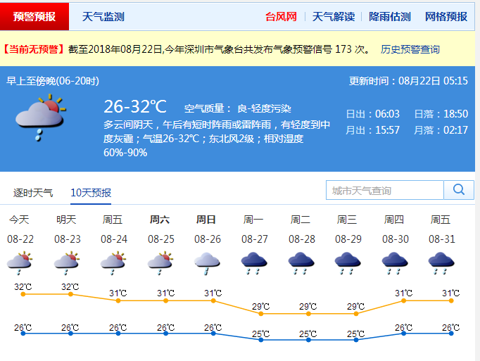 市區(qū)內(nèi)維持2級(jí)的平均風(fēng)力,沿海地區(qū)平均風(fēng)力3-4級(jí),最大陣風(fēng)將達(dá)到5-6級(jí)。最小相對(duì)濕度為60%,最大濕度90%。天氣潮濕悶熱,市民應(yīng)注意飲食衛(wèi)生,謹(jǐn)防胃腸道疾病。