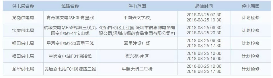 8月25日停電區(qū)域