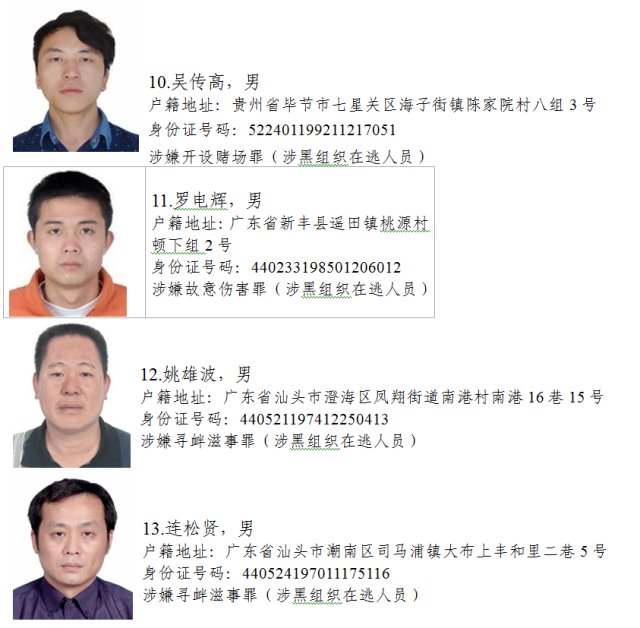 近日,省掃黑除惡辦和省公安廳聯(lián)合公開懸賞50名在逃黑惡勢力犯罪嫌疑人,經(jīng)查證屬實并予以抓獲的,獎勵人民幣1-5萬元不等。見到下面這50名在逃黑惡勢力犯罪嫌疑人,請果斷舉報!