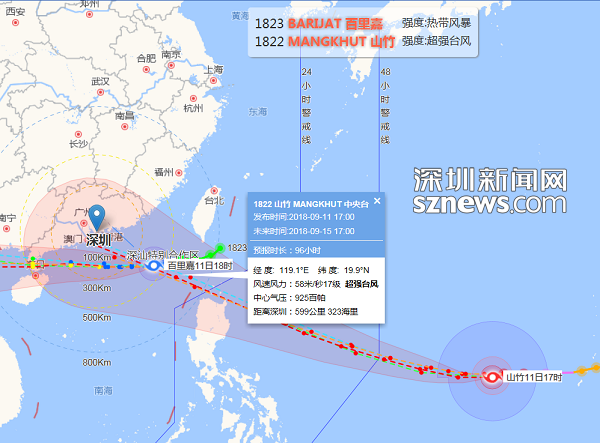 雙臺風“山竹”“百里嘉”預計本周襲深 大風大雨了解下!