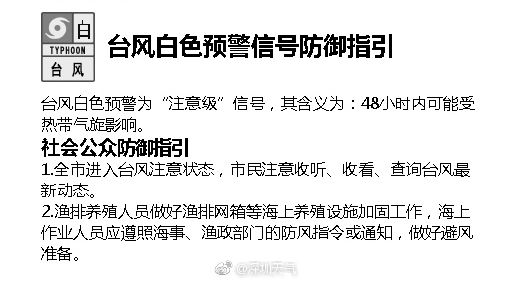 深圳市氣象臺已于2018年09月14日12時30分在全市發(fā)布臺風白色預警,預計“山竹”將可能在48小時內影響我市,全市進入臺風注意狀態(tài),遵照海事、漁政部門的防風指令或通知,做好避風準備。