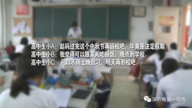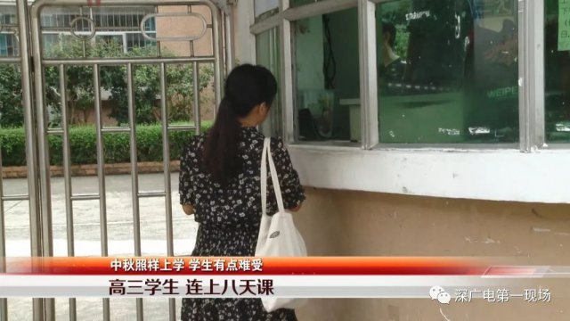 我們還了解到,就讀高三的學(xué)生只有周六放了一天假,從昨天開始就一直在上課,預(yù)計要上到國慶節(jié)才能休息,這樣算來,學(xué)生一共要連上 8 天的課程。