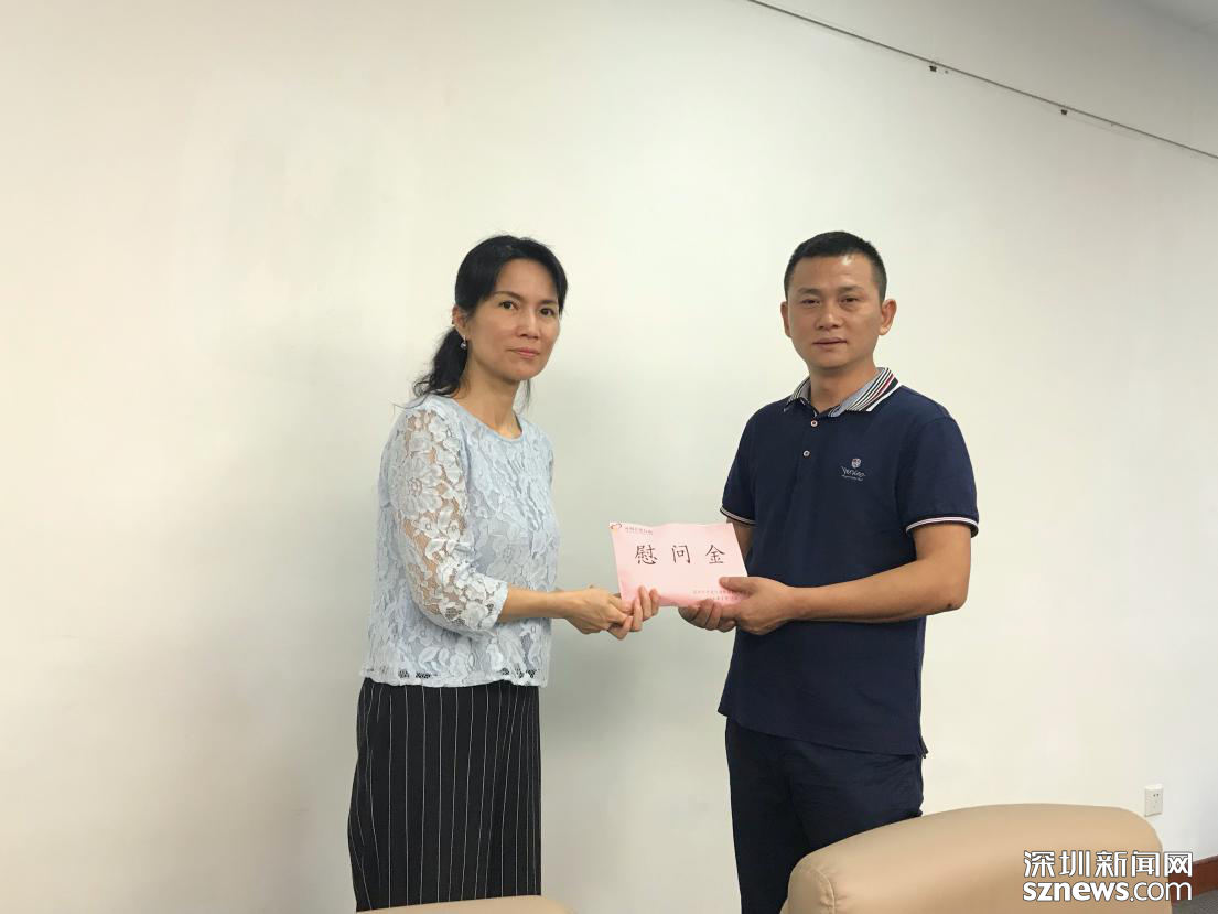 9月25日下午,深圳市關(guān)愛行動(dòng)組委會(huì)辦公室(以下簡稱“市關(guān)愛辦”)和深圳市關(guān)愛行動(dòng)公益基金會(huì)在得知這一情況之后,積極響應(yīng),在深圳市教育局相關(guān)部門的大力協(xié)調(diào)下,向李得父親送上3萬元慰問金。市關(guān)愛辦的相關(guān)負(fù)責(zé)人叮囑李得父親,希望慰問金可以幫其家庭渡過難關(guān),也希望學(xué)校、家庭等各方多加鼓勵(lì)孩子,樹立信心, 放下思想包袱,好好配合開展治療,祝愿李得同學(xué)早日康復(fù),重新回到校園上課。