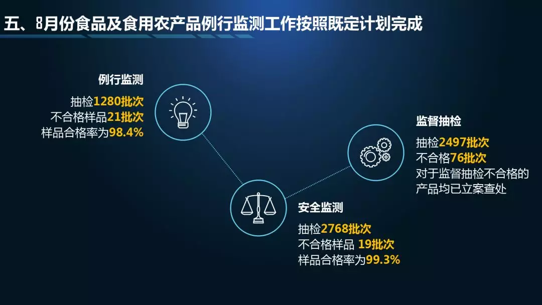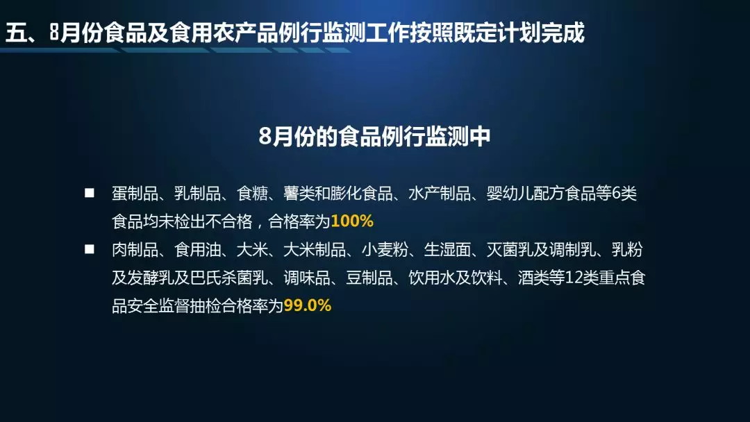 8月份食品及食用農(nóng)產(chǎn)品例行監(jiān)測工作按照既定計劃完成