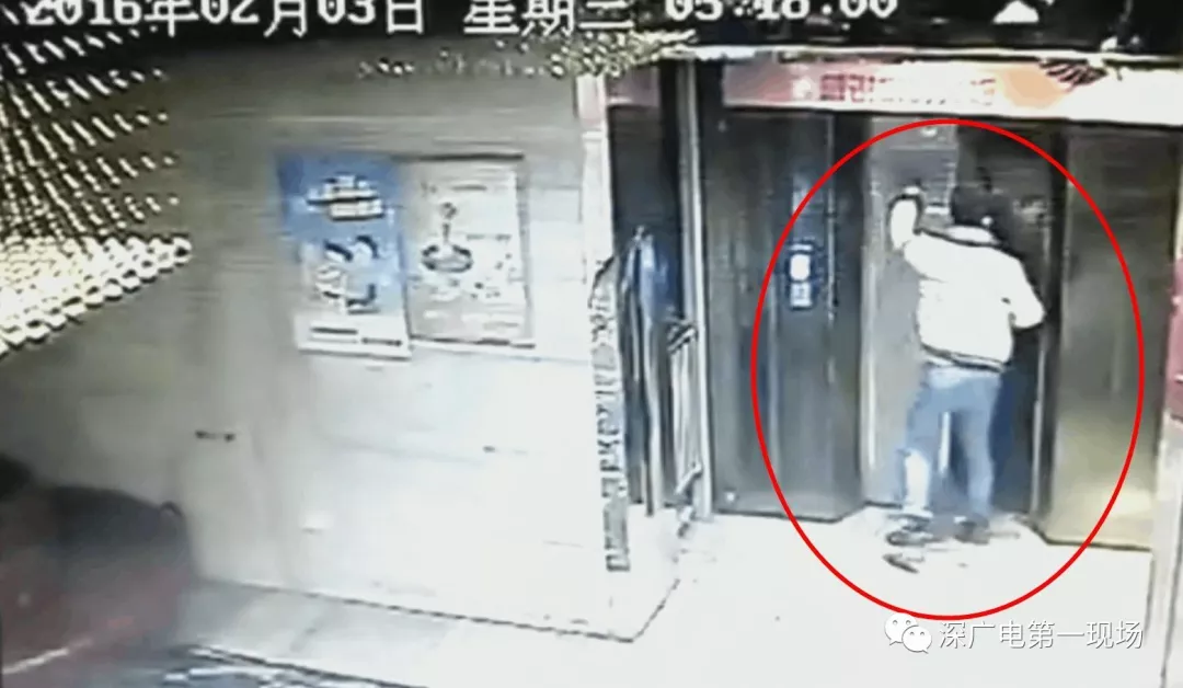 這名男子也是從遠(yuǎn)處飛奔向電梯一腳就踹開了廂門,然后不小心踏空掉下了電梯井。