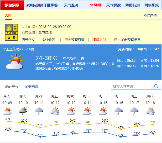鵬城今日以晴朗天氣為主,部分時間云量較多,早晚溫差增大,最低氣溫在23℃左右,最高氣溫在31℃左右?;姻踩詴撊膣i城,市民應注意預防呼吸道疾病。