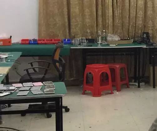 近日,根據(jù)深圳市市場和質(zhì)量監(jiān)管委掃黑除惡辦提供的案件線索,執(zhí)法人員根據(jù)前期摸排,摸清這個(gè)窩點(diǎn)的生產(chǎn)規(guī)律后,9月27日晚采取收網(wǎng)行動(dòng)。晚上9時(shí)該窩點(diǎn)送貨員工準(zhǔn)備將成品出貨,蹲守在附近的執(zhí)法人員迅速行動(dòng),一舉控制住三名員工,查獲標(biāo)有""、"iPhone"注冊商標(biāo)標(biāo)識的"蘋果 iPhone8S"手機(jī)成品500余部。另一路執(zhí)法人員同時(shí)到達(dá)生產(chǎn)窩點(diǎn),控制住現(xiàn)場的老板及生產(chǎn)員工。經(jīng)檢查發(fā)現(xiàn),該"地下"生產(chǎn)窩點(diǎn)面積不到50平方米,生產(chǎn)條件非常簡陋,只有幾臺測試用的電腦。