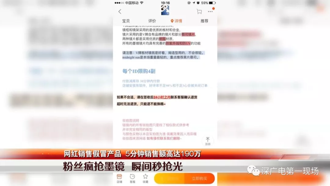 在明知品牌墨鏡有問(wèn)題的情況下,貓娘于某依然在微博上做了預(yù)告,稱自己通過(guò)特殊渠道找到了一批代工廠的墨鏡,在吸引到粉絲關(guān)注以后,她在自己的網(wǎng)店上線銷(xiāo)售。因?yàn)槟R銷(xiāo)售價(jià)格是正品的三分之一,幾千付墨鏡上線幾分鐘就被秒搶光,而這些眼鏡其實(shí)就是小作坊生產(chǎn)出來(lái)的假冒產(chǎn)品。