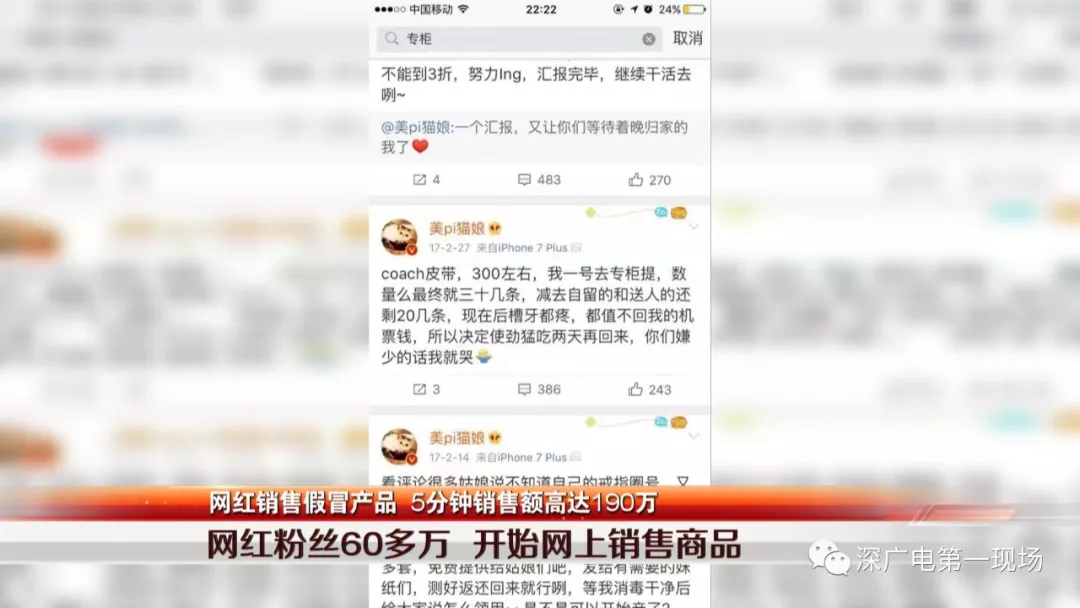 經(jīng)審訊,嫌疑人于某交代,她2013年注冊(cè)了@美Pi貓娘的微博賬號(hào),開(kāi)始做彩妝的分享和解答,2016年,已擁有近30萬(wàn)粉絲的她來(lái)到深圳做網(wǎng)店,通過(guò)自己創(chuàng)立的深圳某珠寶公司做珠寶、彩妝。同時(shí),還通過(guò)微博活動(dòng)以及關(guān)愛(ài)小的動(dòng)物的善舉吸引更多的人關(guān)注,共積累了62萬(wàn)粉絲。