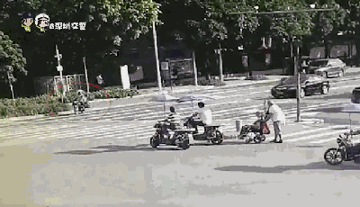 深圳一摩托車載倆孩子與小車相撞,結果……