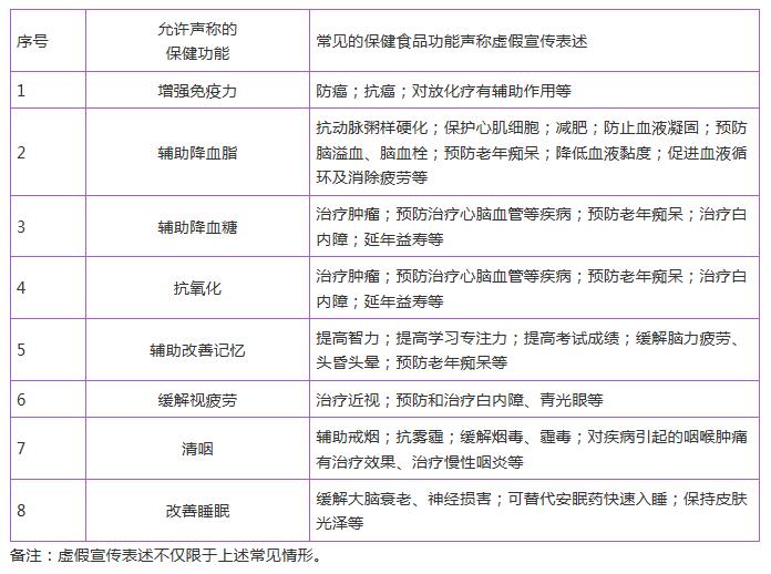 常見(jiàn)的保健食品功能聲稱虛假宣傳表述