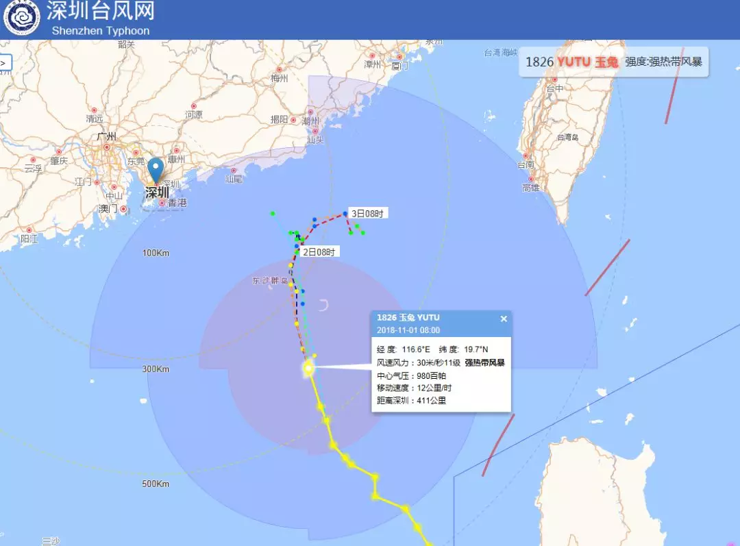 臺風(fēng)“玉兔”的結(jié)局似乎已經(jīng)注定,但即便它正在減弱,“玉兔”終究還是既有名字又有正式編制的第26號臺風(fēng),各位仍然不可掉以輕心!深圳市氣象臺已于2018年10月31日17時30分將鹽田區(qū),大鵬新區(qū),西部海區(qū)和東部海區(qū)臺風(fēng)白色預(yù)警升級為藍色。