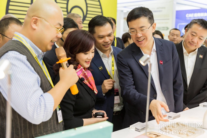 深圳市副市長艾學峰(右二)參觀第六屆深圳國際工業(yè)設計大展的設計作品(主辦方供圖)