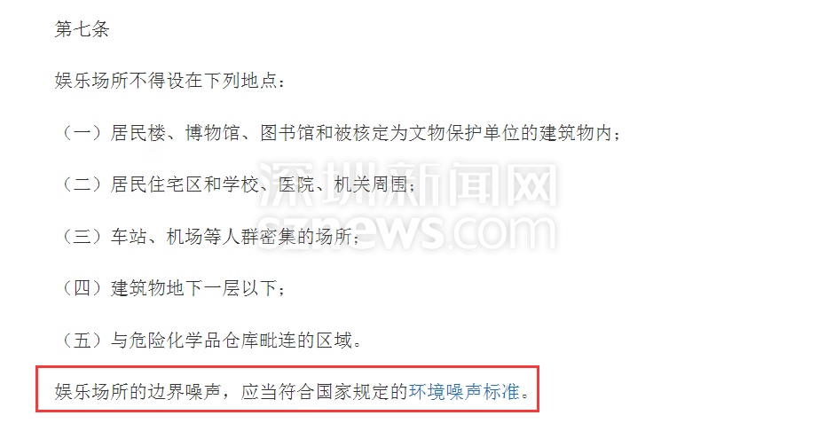 此外,該管理?xiàng)l例還對娛樂場所的邊界噪聲做出了明確規(guī)定,要求其邊界噪聲應(yīng)當(dāng)符合國家規(guī)定的環(huán)境噪聲標(biāo)準(zhǔn),即睡眠30分貝。
