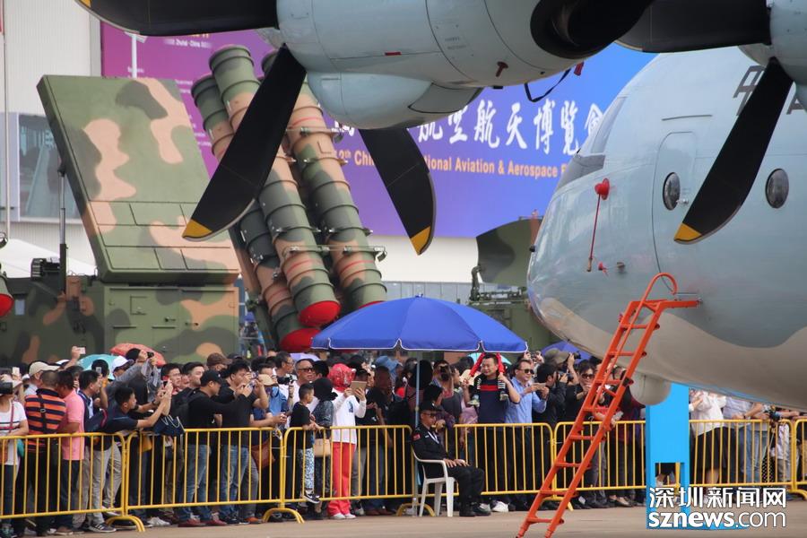 在運-9大飛機前拍攝的觀眾