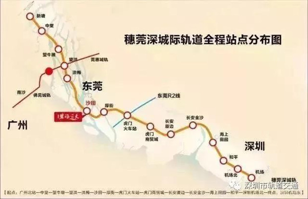 據(jù)了解,穗莞深城際線自廣深鐵路新塘站引出,跨越廣深鐵路后經(jīng)由廣州、東莞、深圳一路向南敷設(shè),止于深圳機場站,并預(yù)留南延至前海條件,正線總長約76.1公里。穗莞深城際鐵路是珠三角城際軌道交通網(wǎng)主軸,全線設(shè)站15座,其中深圳段17公里,設(shè)有海上田園、和平、機場北、機場4站。