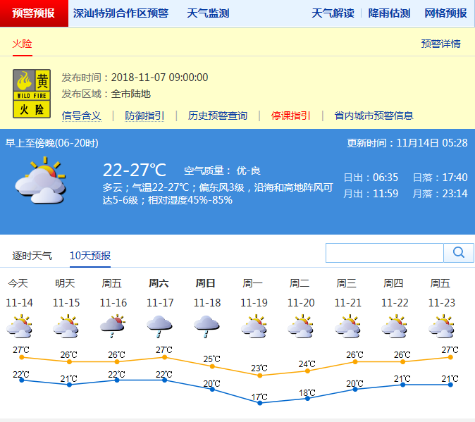 深圳新聞網(wǎng)11月14日訊(記者 陳婕)@深圳人,溫度并不高的中午,適合出去吹吹小風(fēng),散散小心,睡睡小覺。趁天氣好,還可以曬曬被子!過幾天天就沒那么好了,距離周末的冷空氣還有幾天準備時間,這次不會讓你們太失望,都可以準備好長袖了!