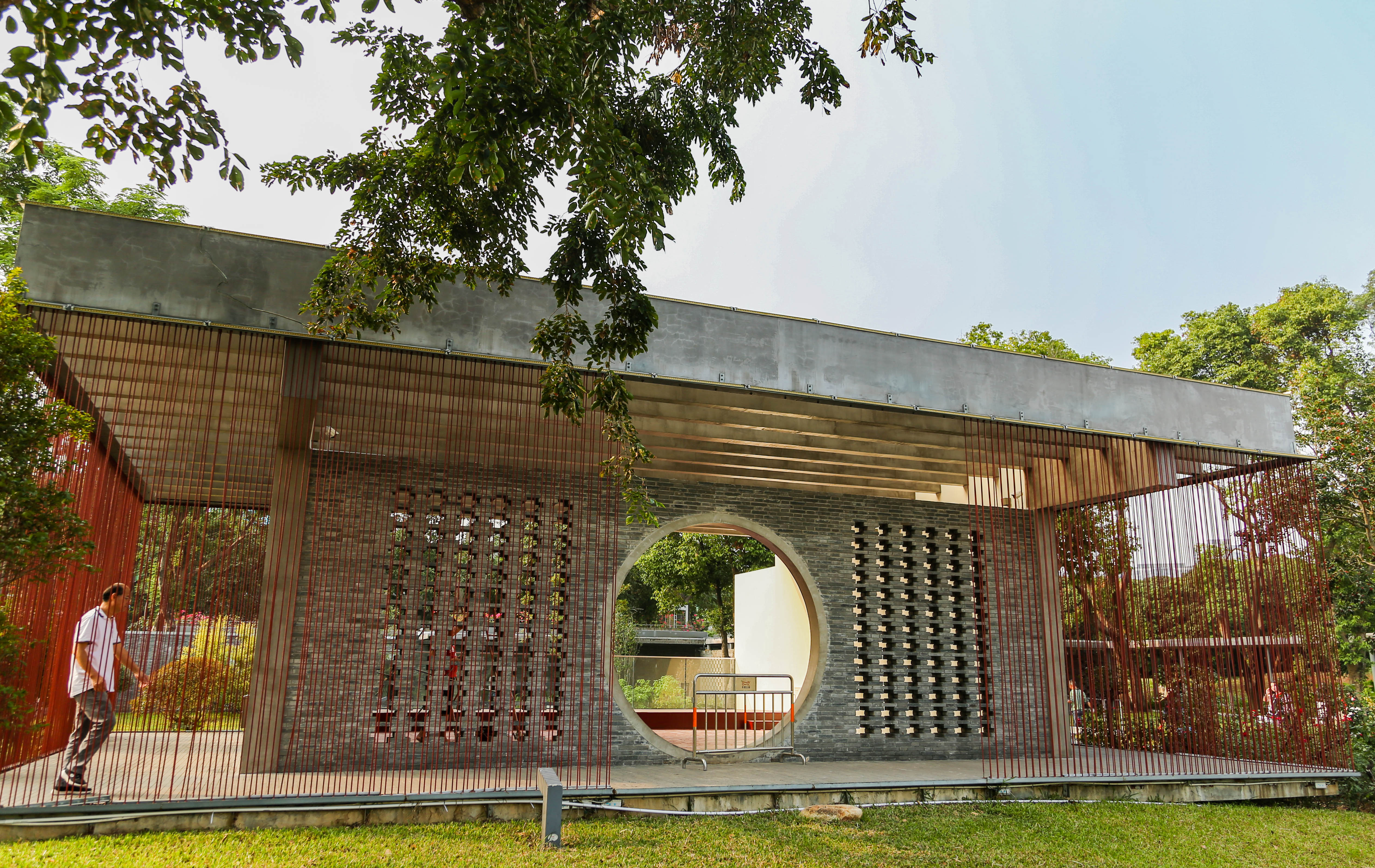 記者看到,目前西式婚禮堂和中式禮堂正在進(jìn)行最后的裝修和布置。西式禮堂潔白寧?kù)o,象征著純美的愛(ài)情。中式堂采用傳統(tǒng)的中軸對(duì)稱(chēng)布局,軸線(xiàn)串聯(lián)內(nèi)院、建筑和湖面,外面拉了兩層紅色的鋼筋繩子,讓人聯(lián)想起“千里姻緣一線(xiàn)牽”。