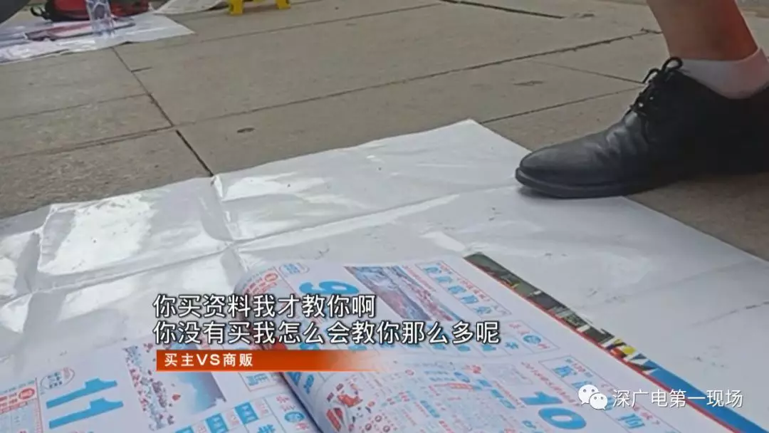記者發(fā)現(xiàn),為了推銷自己的內部資料,這些商販可謂是花樣百出,不少商販甚至打出“買了資料、中獎到笑”的標語來吸引顧客。在很短的時間里,就有不少人心甘情愿地掏了腰包。而前來購買這種資料的,主要都是一些年紀比較大的老人或者是周邊工地上的工友,大家無一例外都想通過這種內部資料來實現(xiàn)一夜暴富的夢想。