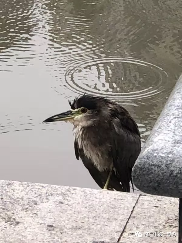 公園的保安發(fā)現后,馬上致電深圳市野生動物保護協會,工作人員許先生到場后,把這只夜鷺解救上岸。