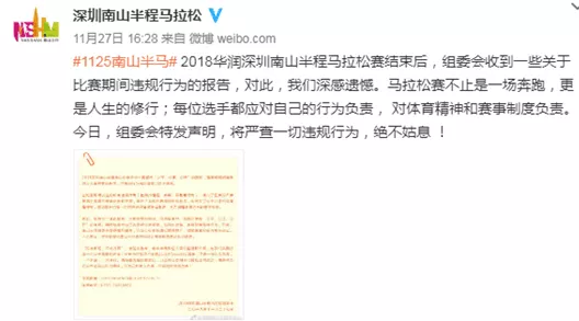 https://mp.weixin.qq.com/s/xge5TY29hk9IjLRMCAG43w希望廣大跑者遵守賽事規(guī)程,尊重其他正常參賽的跑者,尊重體育精神,自覺維護(hù)賽場秩序;深圳南山半程馬拉松組委會(huì)將在今后賽事中加強(qiáng)賽事監(jiān)督管理并融入技術(shù)手段,以跑者體驗(yàn)至上,共同營造健康、公正、公平的馬拉松參賽環(huán)境。